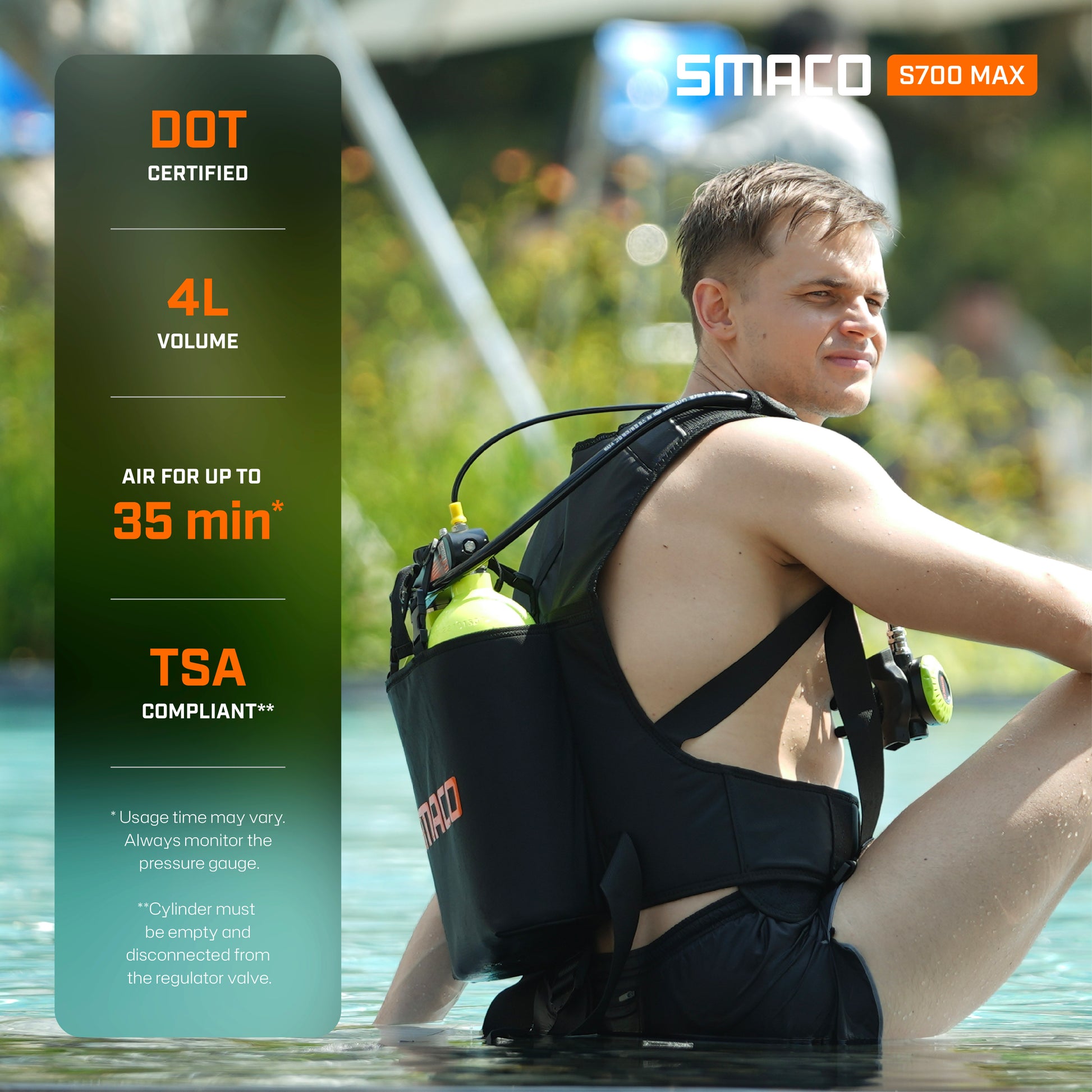 * Usage time will vary. For your safety, always monitor the pressure gauge and do not exceed 10 meters (33 ft).