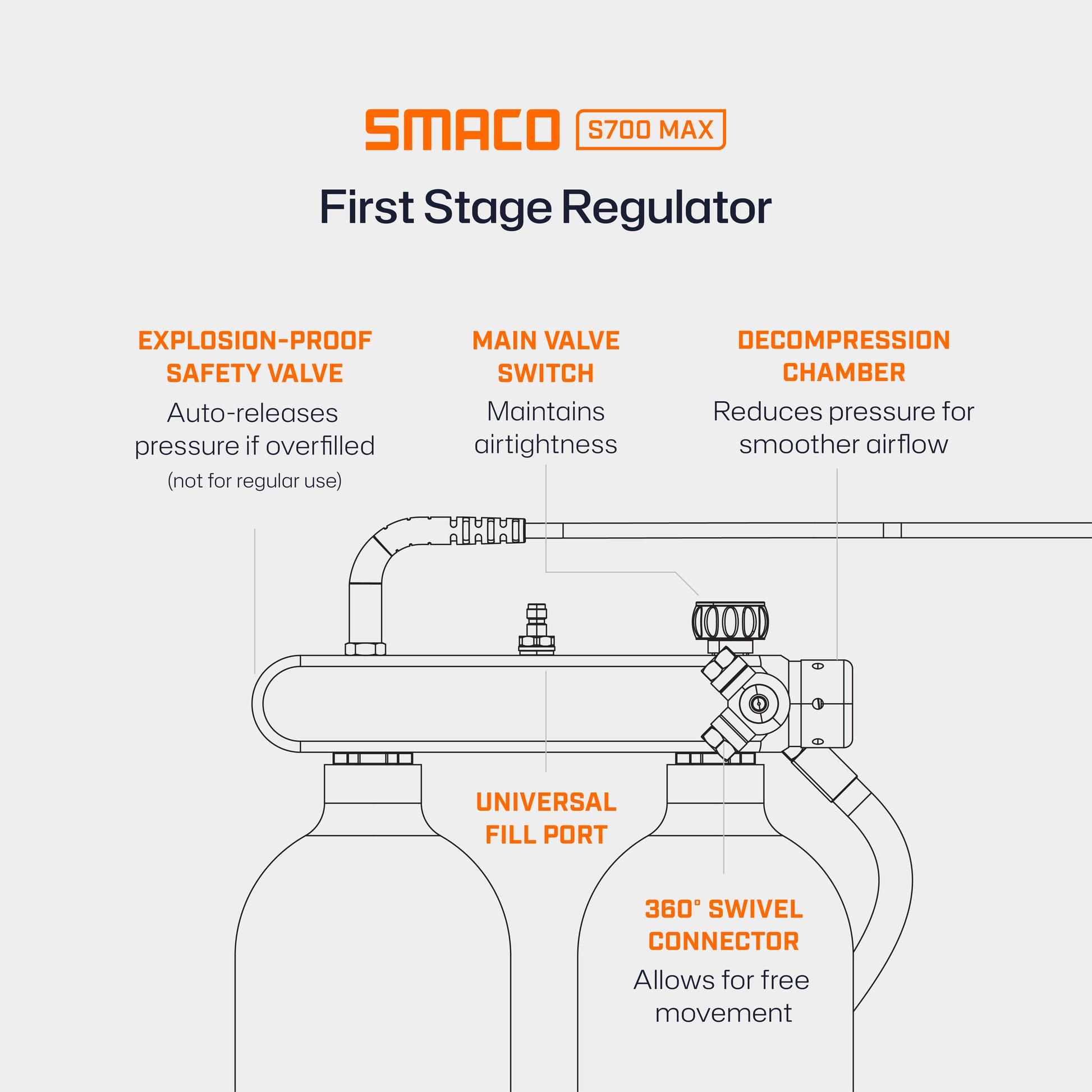 Only fill this tank with compressed air that meets human respiratory standards (EN12021). Do not use oxygen or other gases, as they may damage the internal system and pose safety risks.