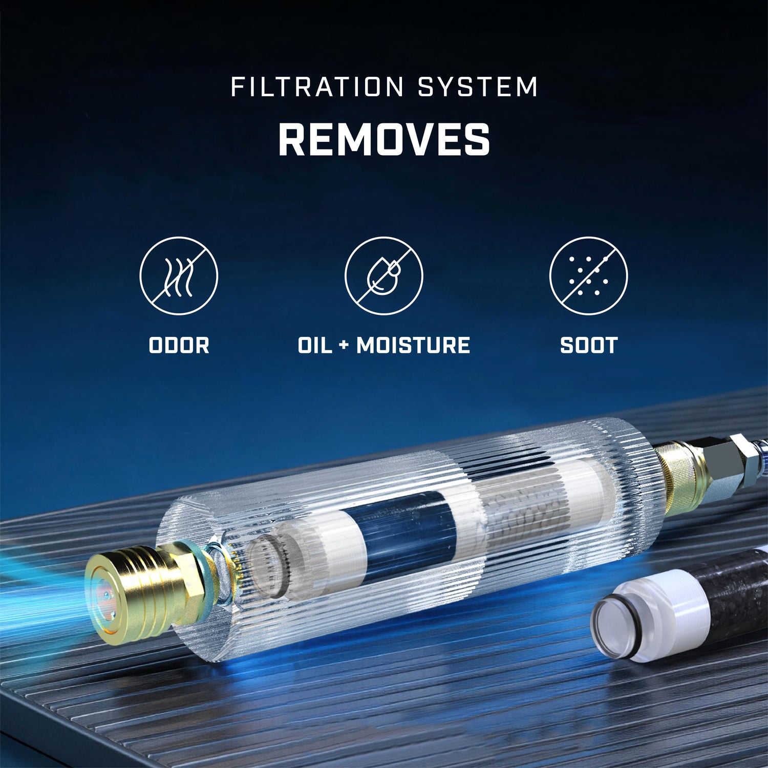 Air quality is critical when dealing with high-pressure systems, and the Shoebox 1A excels with its multi-stage filtration system. By effectively removing moisture, oil, and impurities, it helps protect your equipment and ensures optimal performance for every fill. Whether you’re maintaining precision gear or preparing for your next dive, this compressor delivers clean, reliable air every time.