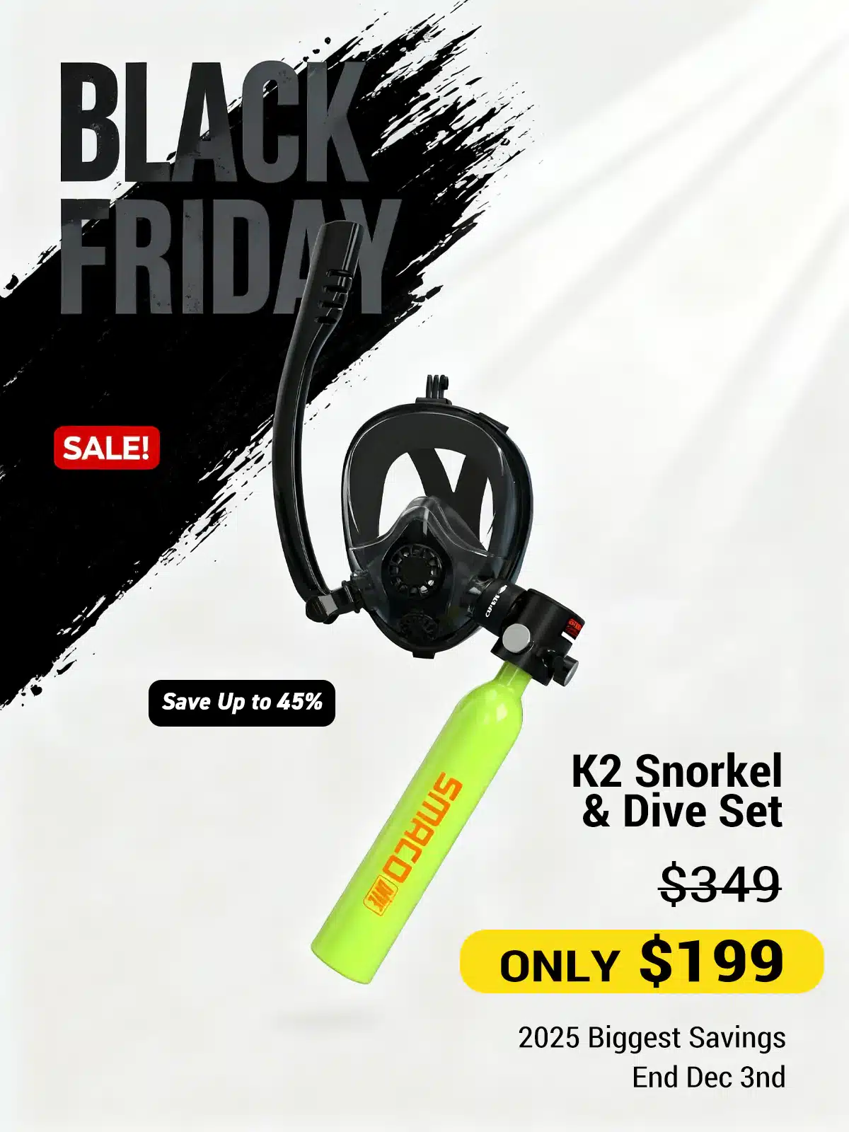 The SMACO M8068 combines a full-face snorkel mask with a compact 0.5L mini diving tank—