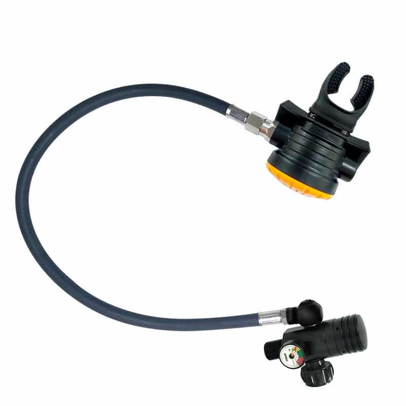 - Medium Pressure Hose: The durable medium pressure hose connects the first stage regulator to the second stage respirator, delivering a steady flow of air.