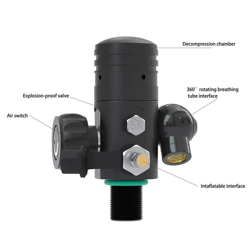 - Main Valve Switch: The main valve switch allows for effortless control of the airflow, enabling easy adjustment during dives.
